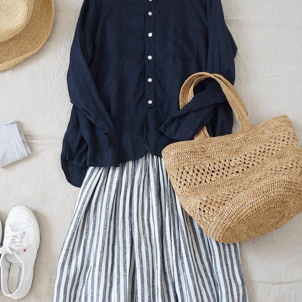 【セット】気質アップ 長袖 ボタン Tシャツ ストライプ柄 カジュアルパンツ S-L 2点セット