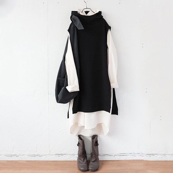 特別デザイン ノースリーブ ニット 長袖 ハイネック ワンピース S-L 2点セット