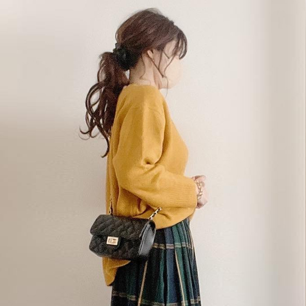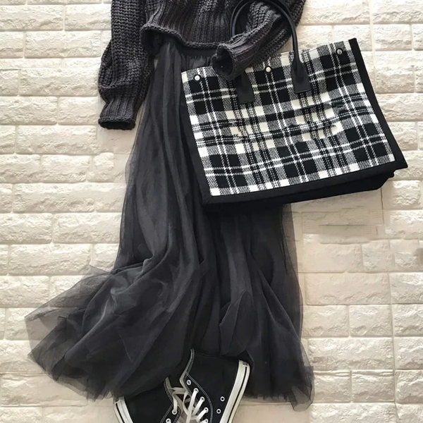 高领长袖套头毛衣+松紧腰抽褶拼接半身纱裙两件套