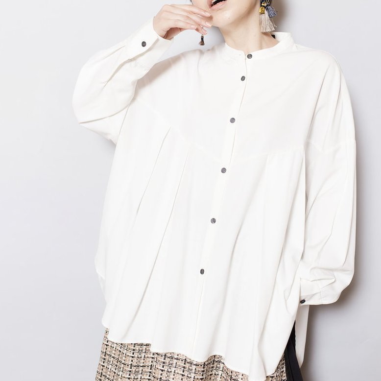「ファッショナブル」リピー数高 ギャザー スタンドネック ボタン 清新 定番 シンプル 人気上昇中 長袖 シャツ