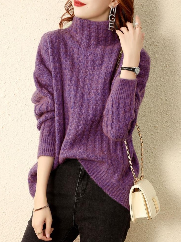 質感あふれる ハーフネックプルオーバールーズニットセーター