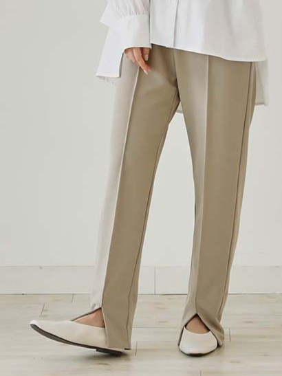 質感あふれる カジュアル ロング丈 ハイウエスト 無地 カジュアルパンツ