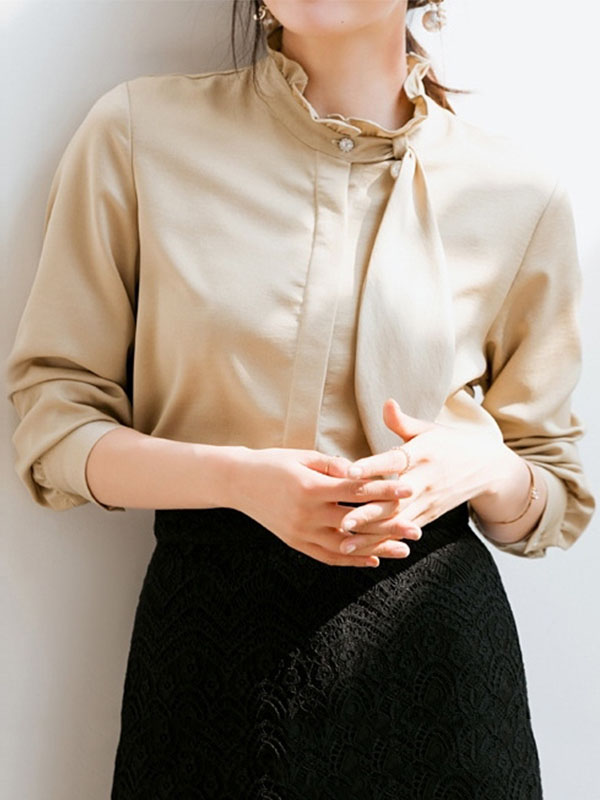 可愛いデザイン スタンドネック 蝶结び ビーズ付き シャツ