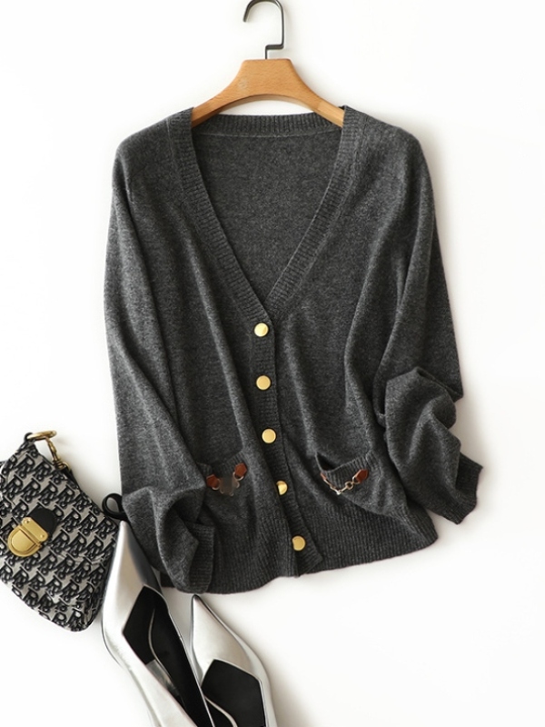大流行新作 無地 エレガント 長袖 カーディガン