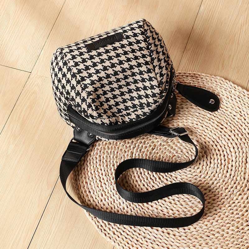 「オフィスカジュアル 」千鳥格子 肩掛け 斜め掛け レトロ シェルバッグ ファスナー ショルダーバッグ