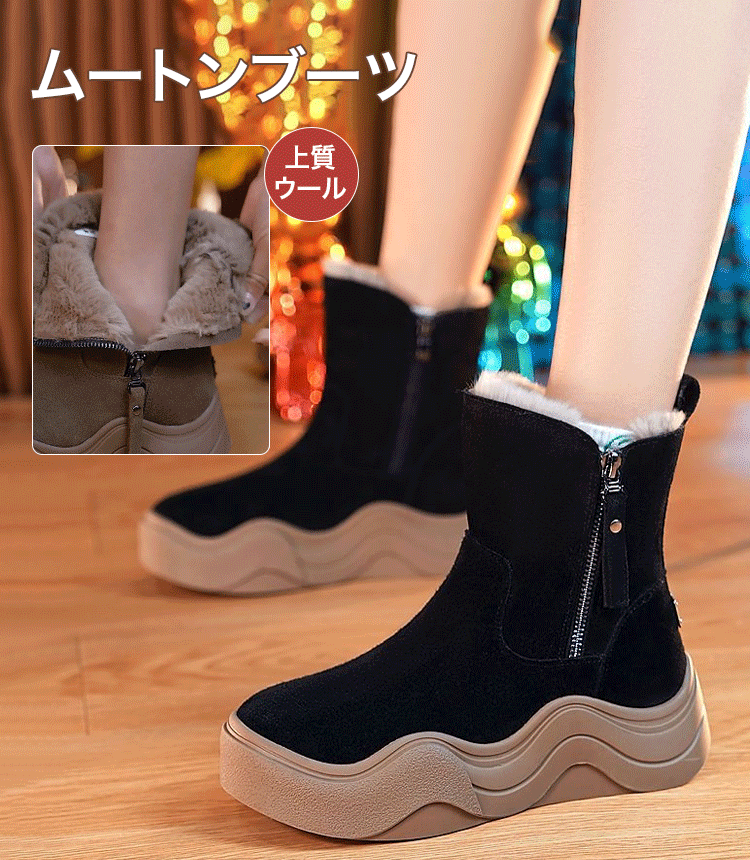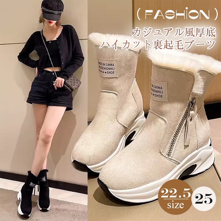 カジュアル風厚底ハイカット裏起毛ブーツ