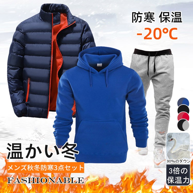 メンズ防寒ダウンジャケット+パーカー+ズボンセット 超とお得に!