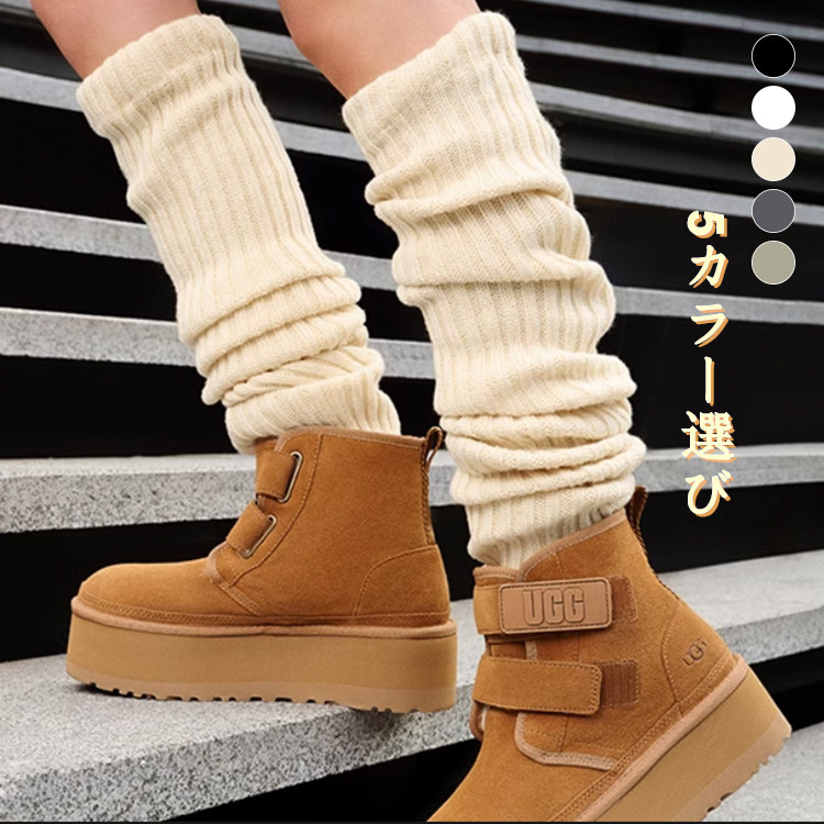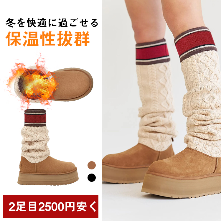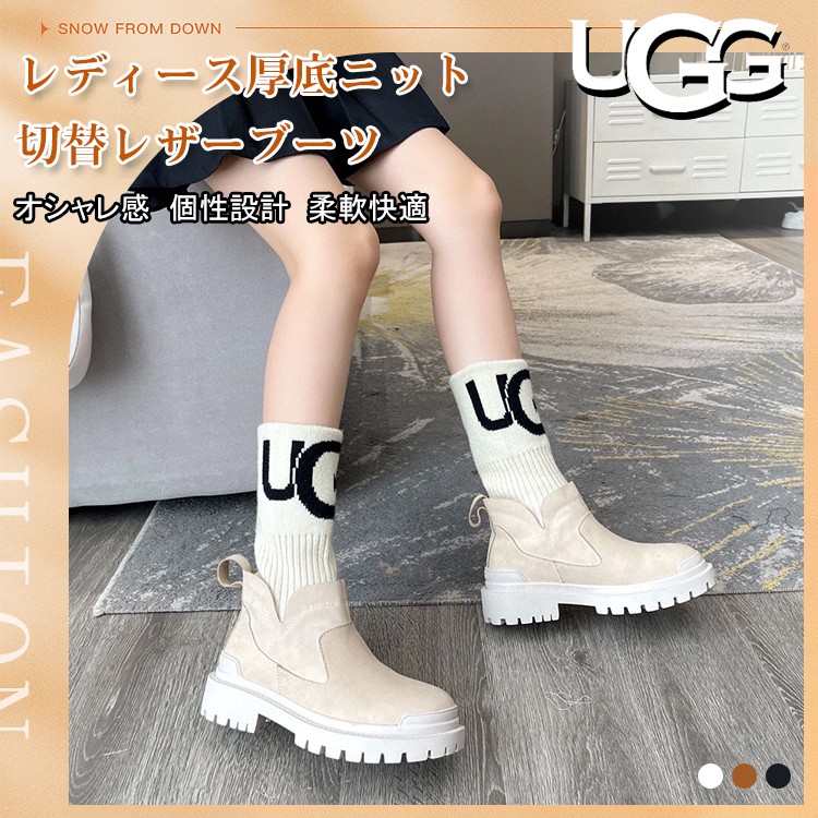 レディース厚底ニット切替レザーブーツ