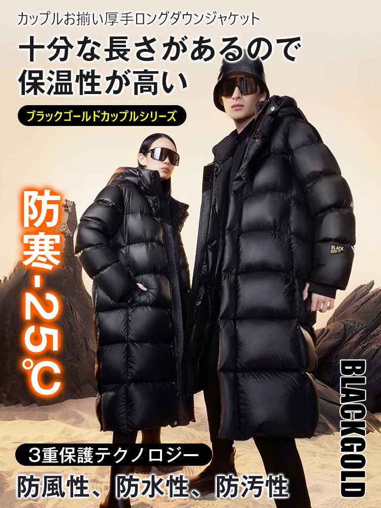 カップルお揃い厚手ロングダウンジャケット