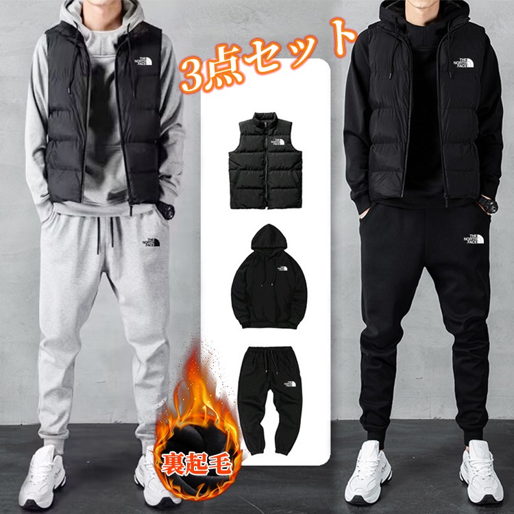 メンズ裏ボアパーカー&パンツ&ダウンベスト三点セット