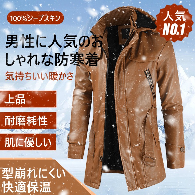 暖かい裏起毛付きカジュアル風メンズレザージャケット