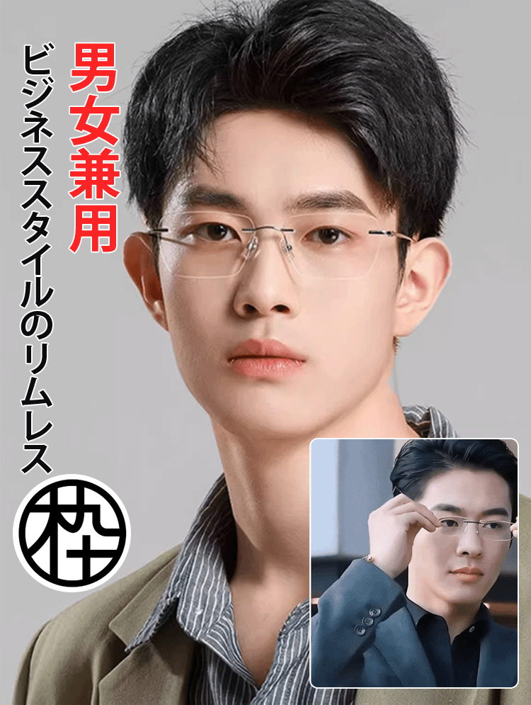 光感変色ズームリムレス老眼用メガネ【男女兼用】